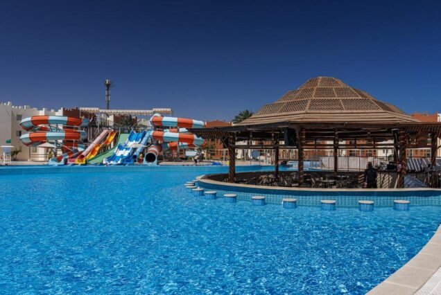 يقع منتجع صن رايز رويال مكادي أكوا على خليج مكادي الممتد على طول 2.5 ميل، ويتميز بطابع شرقي ساحر. يزدان المنتجع بتصميم معماري فريد وحدائق غنّاء، بالإضافة إلى مسابح خلابة، حيث يمكن للضيوف الاستمتاع بمرافق الحديقة المائية. يوفر هذا المنتجع ذو الخمس نجوم في خليج مكادي وصولاً مباشراً إلى الشاطئ ومنطقتين للمسابح الخارجية. كما يضم سبا يقدم باقة واسعة من خدمات التدليك وعلاجات التجميل. يوفر منتجع صن رايز رويال مكادي أكوا ستة مطاعم تقدم أطباقاً من قوائم طعام متنوعة، تشمل المأكولات الإيطالية والمكسيكية والمتوسطية واليونانية والآسيوية. كما تتوفر خدمة الغرف على مدار الساعة. ويضم المنتجع سبعة بارات ذات طابع مميز، منها بار إنجليزي تقليدي، وباران بجانب المسبح، ومقهى سلطانة ذو الطابع الشرقي. جميع أماكن الإقامة في منتجع صن رايز رويال مكادي أكوا مزودة بميني بار وشرفة أو تراس. تقع بعض الوحدات مباشرة على الشاطئ وتضم مناطق جلوس خارجية بإطلالات خلابة على البحر الأحمر. تضم منطقة المسابح الواسعة خمسة مسابح، من بينها مسبحان مُدفّآن لفصل الشتاء ومسبح للأطفال مزود بمنزلقات مائية متعددة. يمكن للضيوف ممارسة الرياضة على مضمار الجري الذي يبلغ طوله 3.7 ميل أو في مركز اللياقة البدنية المجهز تجهيزًا كاملاً. وتُعدّ الإطلالات الرائعة على البحر الأحمر دعوةً للاسترخاء والراحة. كما تشتهر هذه المنطقة ببعض أفضل مواقع الغطس والغوص. يقع المنتجع على بُعد 30 دقيقة فقط بالسيارة من مطار الغردقة الدولي. ويتوفر موقف سيارات مجاني في الموقع.